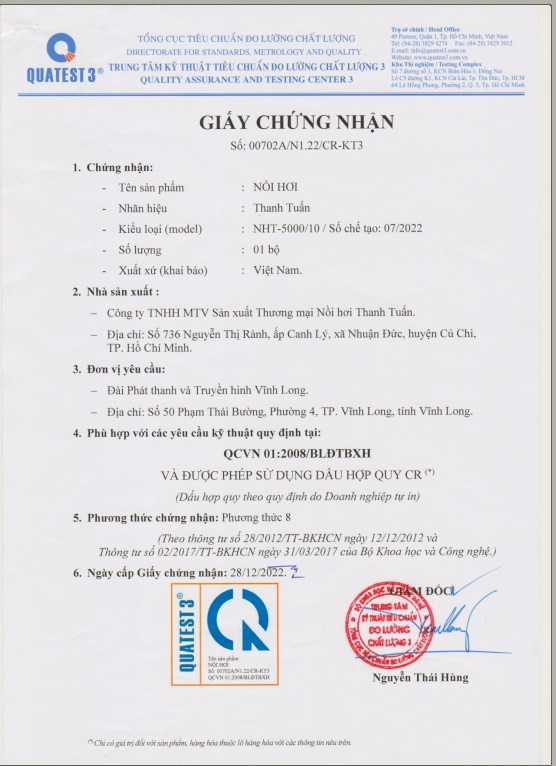 (CQ) QUATEST3 NỒI HƠI ĐỐT DẦU – 07/2022