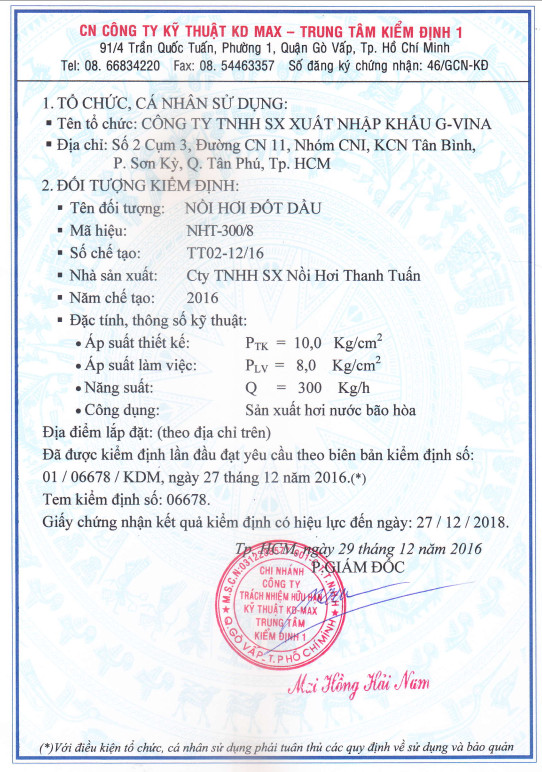 (KD MAX) LÒ HƠI ĐỐT DẦU 300 KG/H – 12/2016