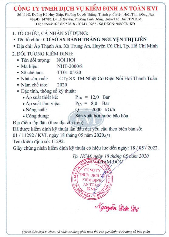 (KVI) LÒ HƠI 2000 KG/H 05/2020