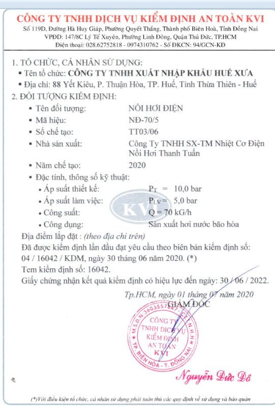 (KVI) LÒ HƠI ĐIỆN 70KG/H – 07/2020