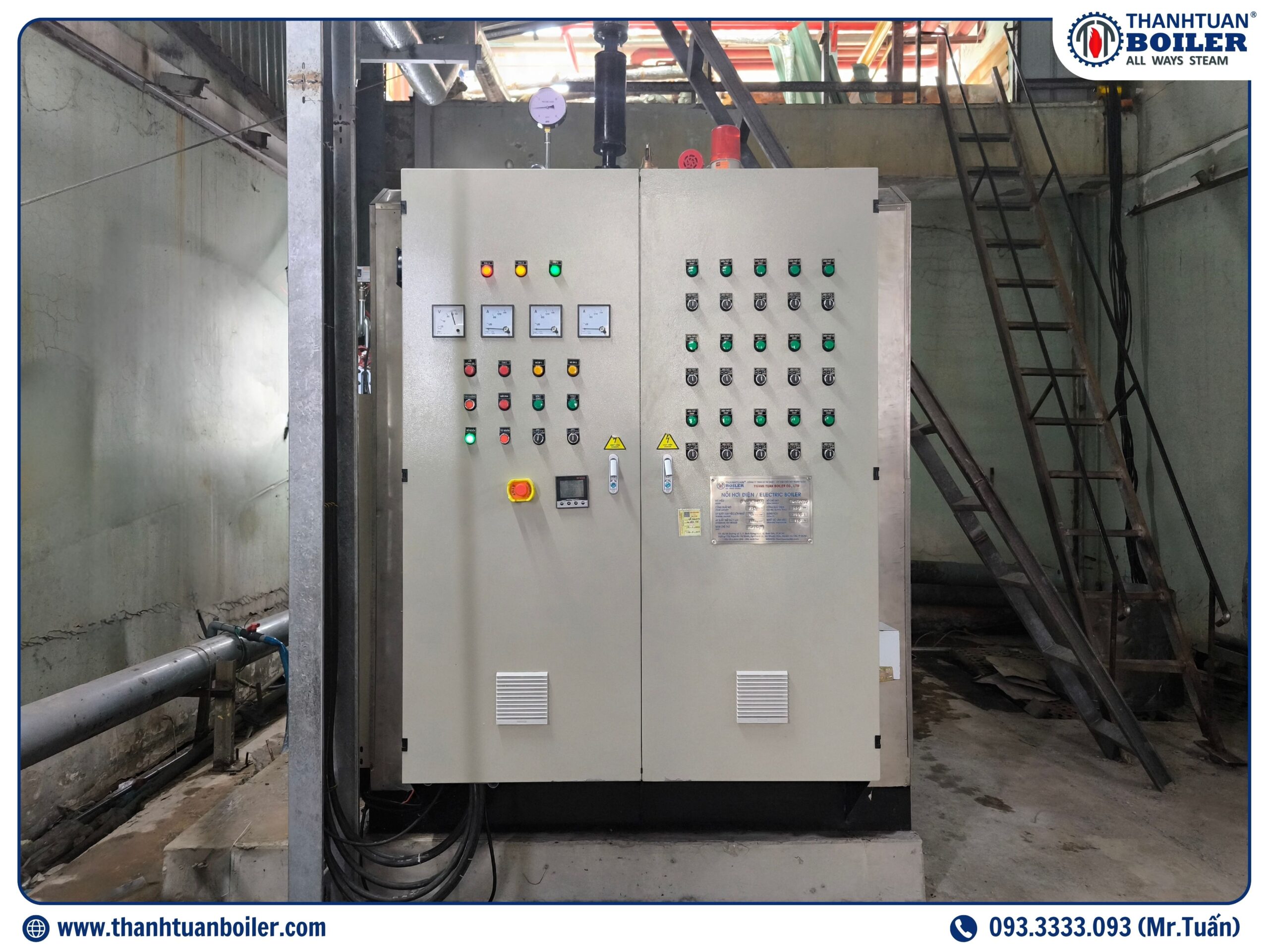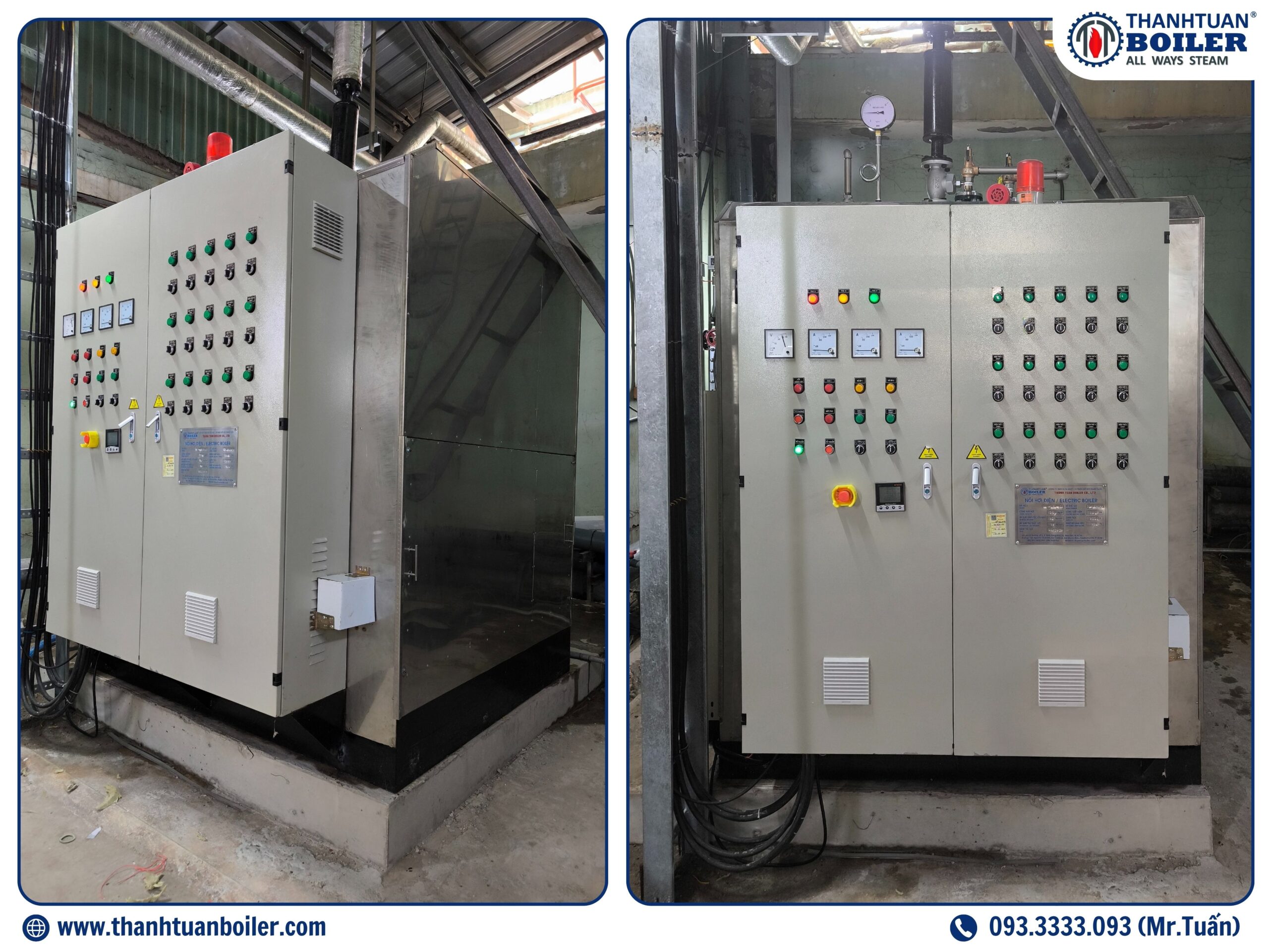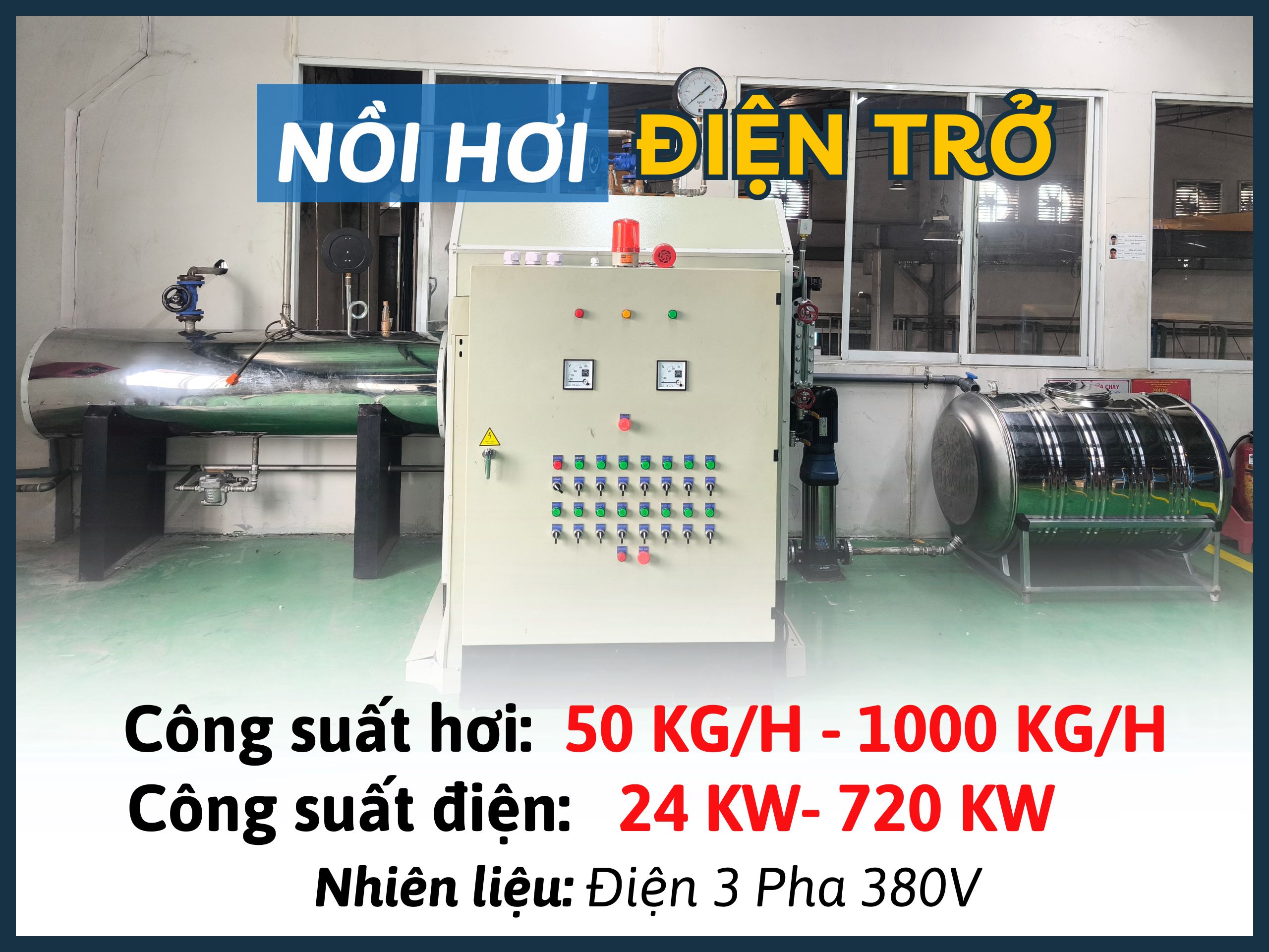 Nồi Hơi Đốt Điện Trở do Thanh Tuấn Boiler sản xuất là một trong những giải pháp tối ưu cho các doanh nghiệp hiện đại yêu cầu môi trường sản xuất sạch sẽ, không phát thải và tiết kiệm chi phí. Với công suất sinh hơi từ 50 kg/h đến 1000 kg/h (tương ứng với công suất điện từ 36 kW đến 720 kW) và thiết kế hiện đại, nồi hơi điện này giúp doanh nghiệp vừa và nhỏ đảm bảo hiệu suất cao, an toàn và bảo vệ môi trường. Đây là sự lựa chọn lý tưởng cho những doanh nghiệp cần giải pháp sạch sẽ, tiện lợi và không lo phát thải khí độc hại, đáp ứng chuẩn khí thải theo QCVN 19:2024/BTNMT